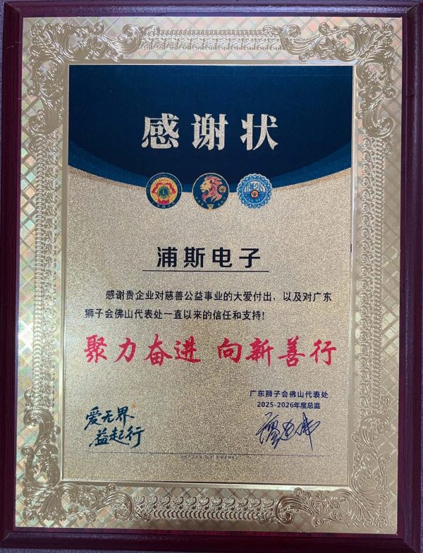 一直以来,佛山市浦斯电子有限公司始终将社会责任融入企业发展战略,在自身稳健发展的同时,积极参与助学、助困、社区服务等各类公益活动,用点滴善举彰显企业担当,赢得了社会各界的广泛认可。